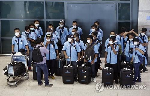 | △ 9일 인천공항에 도착한 외국인들이 메르스 예방을 위해 마스크를 착용하고 있다.(AP=연합뉴스) |