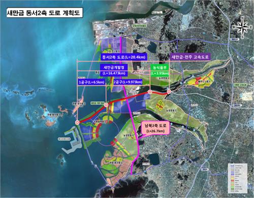 새만금청 내부에서는 동서2축 도로 건설을 '내부개발의 신호탄'으로 여기는 것으로 알려졌다. 이 도로와 교차할 남북2축 도로는 4개 공구로 나뉘어 내년 착공될 계획이다.