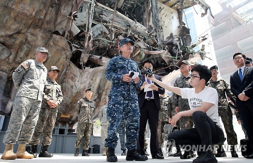 | △ 소감 말하는 해리 해리스 사령관 (평택 사진공동취재단=연합뉴스) 해리 해리스 신임 미국 태평양 사령관이 10일 오전 경기도 해군 2함대 안보공원에 전시된 천안함 선체를 둘러본 뒤 소감을 말하고 있다. 2015.6.10 photo@yna.co.kr |