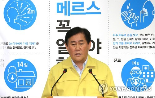 | △ '대국민 당부의 말씀' 발표하는 최경환 총리대행 (세종=연합뉴스) 배재만 기자 = 최경환 국무총리 직무대행이 10일 오전 정부세종청사 보건복지부 공용브리핑룸에서 중동호흡기증후군(MERS·메르스) 관련 '대국민 당부의 말씀'을 발표하고 있다. |