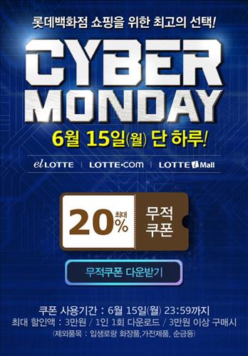 롯데백화점은 오프라인 매장이 쉬는 15일 롯데가 운영하는 온라인 쇼핑사이트 롯데닷컴·롯데아이몰·엘롯데몰과 함께 '사이버 먼데이' 할인 행사를 진행한다고 11일 밝혔다.