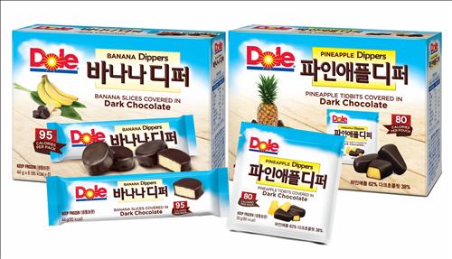 (서울=연합뉴스) 이도연 기자 = 돌(Dole)코리아는 여름을 맞아 열대과일에 다크초콜릿을 코팅해 얼린 과일 디저트 '디퍼 시리즈' 2종을 출시했다고 11일 밝혔다.