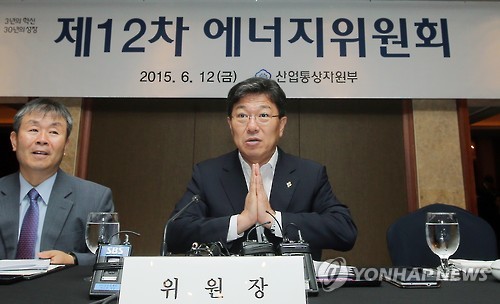 | △ 제12차 에너지위원회 (서울=연합뉴스) 이정훈 기자 = 윤상직 산업통상자원부 장관이 12일 오후 서울 중구 롯데호텔에서 고리 원전 1호기의 가동 중단 여부 결정을 위해 열린 제12차 에너지위원회에 앞서 참석자들과 인사말을 나누고 있다. |