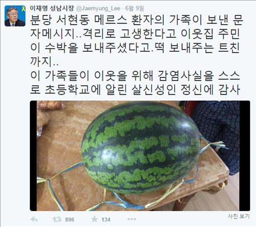 같은 날 서현동 환자 가족과 같은 아파트에 사는 한 주민은 경비실을 통해 이들 가족에게 수박 1통을 보냈다.