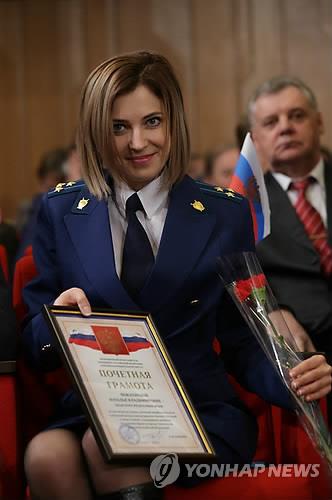포클론스카야는 우크라이나에 속했던 크림이 러시아 연방에 병합된 직후인 지난해 5월 새 연방 공화국의 초대 검찰총장에 임명돼 화제를 낳았었다.