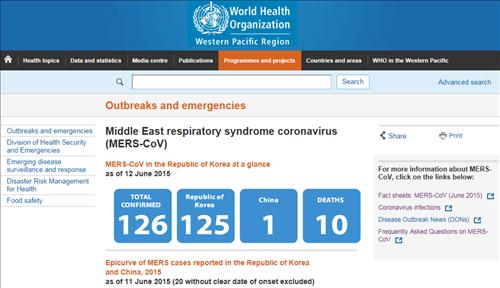 (서울=연합뉴스) 김상훈 기자 = 중동호흡기증후군(메르스) 환자 수(126명) 세계 2위, 사망자 수(11명) 3위.