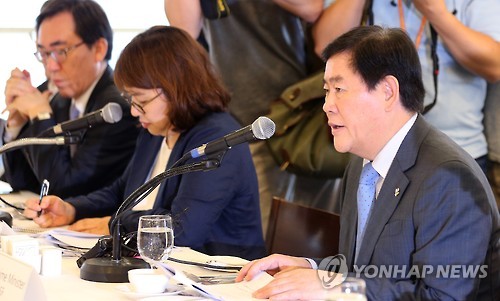 | △ 메르스 대책 설명하는 최경환 총리대행 (서울=연합뉴스) 황광모 기자 = 최경환 국무총리 대행이 12일 오후 서울 태평로 서울외신기자클럽에서 주요국 대사와 주요 외국 경제단체 대표, 국제보건기구(WHO) 관계자들을 만나 중동호흡기증후군(메르스) 확산 방지에 관한 한국 정부의 대책과 입장을 설명하고 있다. 이날 간담회에는 마크 리퍼트 주한 미국대사, 알렉산드르 티모닌 주한 러시아대사, 벳쇼 고로 주한 일본대사, 주한 중국대사관 공사 등 외교사절과 주한미국상공회의소, 주한유럽상공회의소 대표 등 경제단체 관계자가 참석했다. |