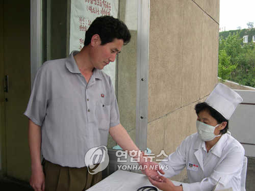 | △ 지난 2003년 6월 평양시 만경대 구역 인민병원에서 사스 검역이 이뤄지고 있는 모습 //북한/ 2003.6.8 (조선신보=연합뉴스) <저작권자 ⓒ 2003 연 합 뉴 스. 무단전재-재배포 금지.> |
