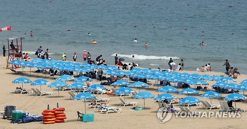 | △ 메르스 여파 한산한 해운대 (부산=연합뉴스) 조정호 기자 = 무더운 날씨를 보인 14일 부산 해운대해수욕장이 한산한 모습이다. 해운대구는 지난해 조기개장 둘째주말(7만명)보다 적은 3만명의 피서객이 해운대를 찾은 것으로 파악했다. 2015.6.14 ccho@yna.co.kr |