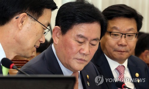 | △ 논의하는 최경환 장관 (서울=연합뉴스) 도광환 기자 = 15일 오전 국회에서 열린 기획재정위원회에서 최경환 부총리 겸 기획재정부 장관이 자료를 살펴보며 방문규 제2차관(왼쪽)과 논의하고 있다. 오른쪽은 주형환 제1차관. |