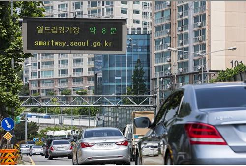 서울 월드컵경기장 경기 때 교통상황 전광판으로 안내