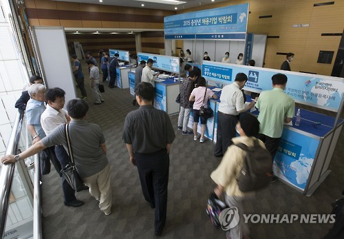(서울=연합뉴스) 이봉준 기자 = 한국무역협회는 16일 서울 강남구 삼성동 코엑스 콘퍼런스룸에서 강남구 및 강남고용노동지청과 함께 중장년 취업 알선을 위한 '2015 중장년 채용 기업 박람회'를 열었다.