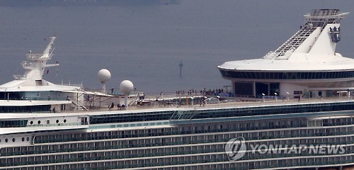 | △ 크루즈선 승객 부산항 '안내려' (부산=연합뉴스) 조정호 기자 = 10일 부산항 영도크루즈터미널에 입항한 '마리너 오프 더 시즈'(13만8천t)호 승객들이 배에서 내리지 않았다. 이날 부산항에 입항한 크루즈선 2척에 탑승한 중화권 여행객 6천여 명은 당초 부산시내 관광을 하려고 했으나 중동호흡기증후군(메르스) 여파로 배에서만 시간을 보냈다. 2015.6.10,<<연합뉴스 DB>> |