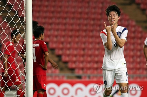 국제축구연맹(FIFA) 랭킹 58위 한국은 한 수 아래로 여긴 143위 미얀마를 상대로 전반 막판이 다 되도록 0의 균형을 깨지 못해 조바심이 조금씩 생기는 시점이었다.