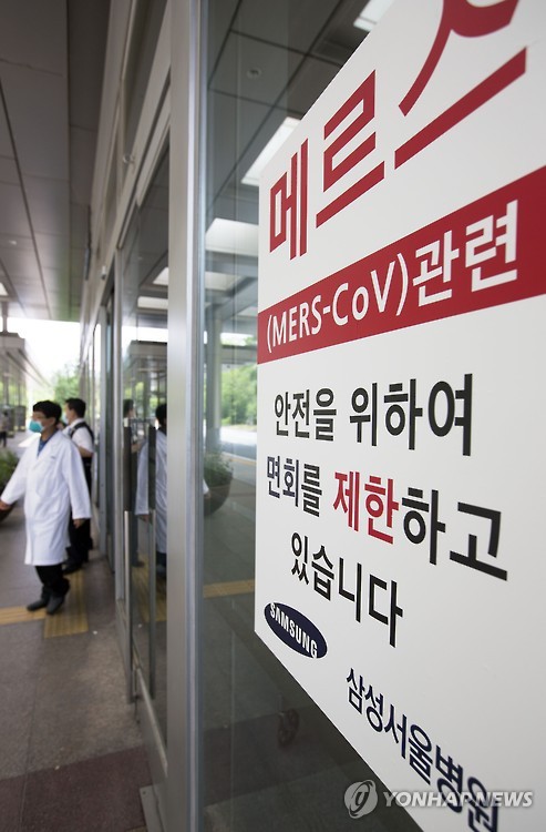 | △ '면회 제한합니다' (서울=연합뉴스) 윤동진 기자 = 16일 중동호흡기증후군(메르스) 확산 여파로 부분적인 병원 폐쇄조치가 내려진 강남구 삼성서울병원에 면회 제한 관련 안내문이 붙어 있다. 2015.6.16 mon@yna.co.kr |