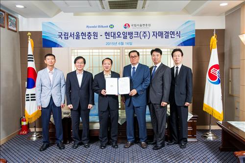 (서울=연합뉴스) 옥철 기자 = 현대오일뱅크(대표 문종박)는 호국보훈의 달을 맞아 지난 16일 국립서울현충원에서 김병섭 부사장, 이선근 현충원장이 참석한 가운데 국립서울현충원과 자매결연 협약식을 했다고 17일 밝혔다.
