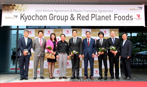 교촌에프앤비는 이날 일본 '레드플레닛푸드'(Red Planet Foods)와 '교촌아시아 디벨로프먼트'합작사 설립식 및 마스터프랜차이즈 조인식을 가졌다.