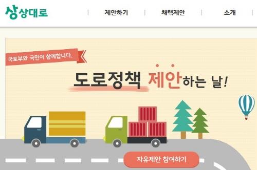 국토교통부는 일반인 누구나 도로정책에 관한 아이디어를 제안할 수 있는 온라인사이트 '상상대로(www.roadidea.or.kr)'를 운영한다고 17일 밝혔다.