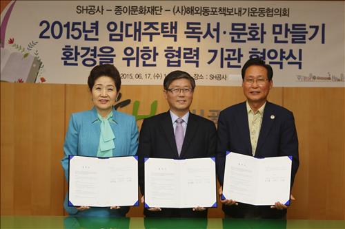 3개 기관은 17일 오후 서울 강남구 개포로의 SH공사에서 임대주택 입주민의 독서 문화 및 정서 함양을 위한 협력 기관 업무협약(MOU)을 체결했다.