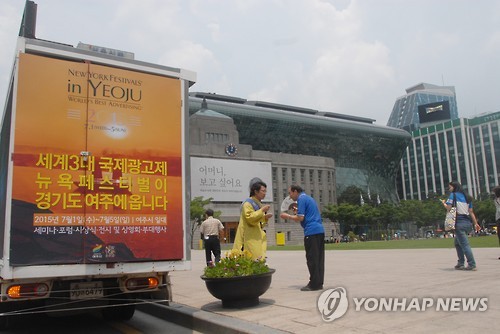 (여주=연합뉴스) 강창구 기자 = 오는 7월 1일부터 5일까지 경기도 여주에서 개최될 국제광고제 '뉴욕페스티벌 in 여주 2015'를 대외에 알리기 위한 전국투어 홍보활동이 17일 개시됐다.