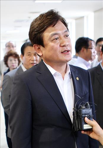 | △ (청주=연합뉴스) 전창해 기자 = 대전고법 제7형사부(유상재 부장판사)는 17일 기부행위와 사전선거운동 혐의로 불구속 기소된 김병우 충북도교육감에 대해 무죄를 선고한 원심을 깨고 벌금 80만원을 선고했다. 사진은 선고 뒤 취재진 앞에서 입장을 밝히는 김 교육감. 2015.6.17 jeonch@yna.co.kr |