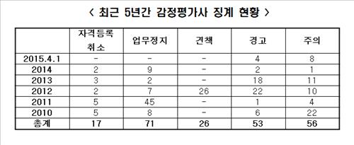 '감정가 뻥튀기' 등으로 5년간 감정평가사 223명 징계