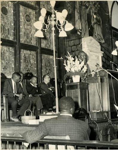 | △ 1962년 이매뉴얼 아프리카 감리교회를 찾은 마틴 루서 킹 목사 <킹 센터 트위터> |