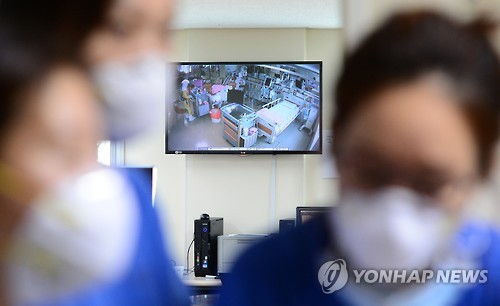 | △ 모니터에 비춰진 음압치료시설 내부 (서울=연합뉴스) 윤동진 기자 = 19일 오전 메르스 환자가 격리 치료 중인 서울 중구 국립중앙의료원 중환자실에 설치된 모니터에서 음압치료시설 내부가 보이고 있다. |