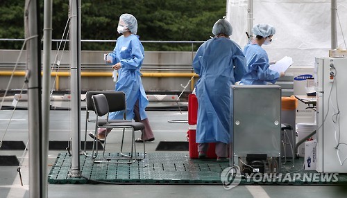 | △ 삼성서울병원 옥상에 설치된 메르스 대응 시설 (서울=연합뉴스) 한종찬 기자 = 중동호흡기증후군(메르스) 사태가 장기화 국면에 접어든 가운데 19일 오후 서울 강남구 일원동 삼성서울병원 주차장 옥상에 설치된 메르스 대응 시설물에서 의료진이 분주히 움직이고 있다. 2015.6.19 saba@yna.co.kr |