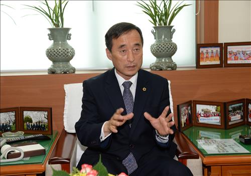 | △ 박영철 울산시의회 의장이 연합뉴스와 인터뷰하고 있다. |
