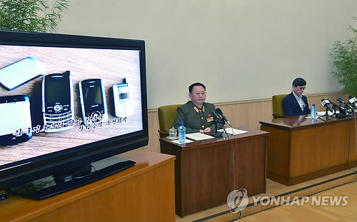| △ "북한, 남한 주민 2명 '간첩' 혐의로 체포" (평양 조선중앙통신=연합뉴스) 북한 당국은 3월26일 남한 주민 2명을 '간첩' 혐의로 체포했다고 발표했다. 조선중앙통신은 이날 "반공화국 정탐·모략행위를 감행하다가 적발체포된 괴뢰정보원 간첩 김국기, 최춘길 씨의 국내외 기자회견이 26일 인민문화궁전에서 열렸다"고 밝혔다. 사진은 김국기(오른쪽)씨로 알려진 남성이 기자회견에 임하는 모습. 2015.3.27 photo@yna.co.kr |