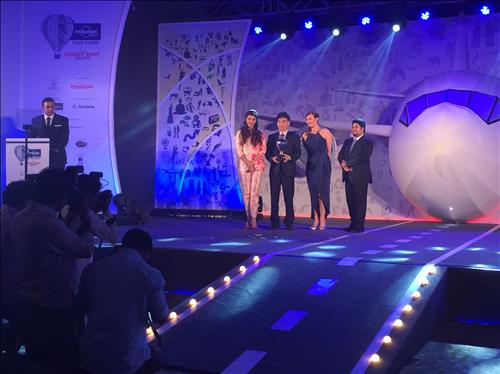 | △ 22일 인도 뭄바이에서 열린 '론리플래닛 트래블 어워드'에서 한국이 '가장 떠오르는 여행지'에 선정돼 이병선(오른쪽에서 세번째) 한국관광공사 뉴델리 지사장이 수상하고 있다.<<한국관광공사 뉴델리 지사 제공>> |