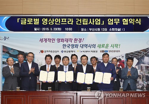 | △ 올해 상반기 부산에서 촬영된 장편 극영화는 17편으로 작년보다 2편 늘었다. 사진은 23일 부산시청 소회의실에서 열린 '글로벌 영상 인프라 건립사업의 효율적이고 원활한 사업추진을 위한 업무협약'(MOU) 체결식 모습. (연합뉴스 자료사진) |