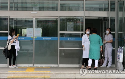 | △ 외래 진료 폐쇄한 강릉의료원 (강릉=연합뉴스) 유형재 기자 = 강원도 내 국가지정 격리병원인 강릉의료원 간호사가 중동호흡기증후군(메르스)에 감염된 것으로 확인된 가운데 24일 강릉의료원 입구에서 간호사 등 의료진이 내원 환자의 출입을 통제하고 있다. 강원도 내 다섯 번째 확진 환자이며, 도내 의료진으로서는 처음이다. |