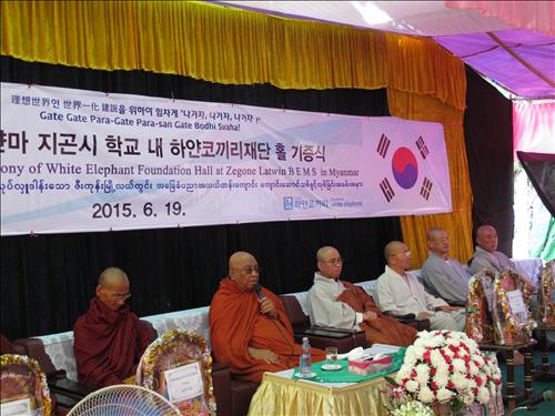 (서울=연합뉴스) 김희선 기자 = 영담 스님이 이사장을 맡고 있는 국제개발협력기구 하얀코끼리가 미얀마 지곤시의 라윈 빌리지 중학교에 4개의 교실로 구성된 건물 1개 동을 최근 기증했다.