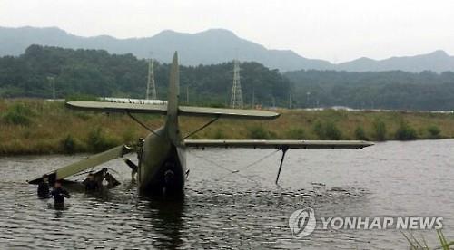 공군 측은 "T-11기가 엔진이상으로 하천에 비상착륙한 것"이라며 "조종사 2명은 무사하고 정비사 한 명만 다쳤다"고 밝혔다.