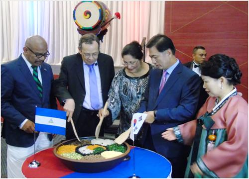 이날 행사에는 레네 누네스 니카라과 국회의장 부부, 사무엘 산토스 외교장관, 마르타 엘레나 국방장관, 아나 구이도 국방장관 등 150여 명의 인사가 참석해 비빔밥, 잡채, 수정과 등 한국 요리사가 직접 만든 30여 가지의 음식을 만끽했다.