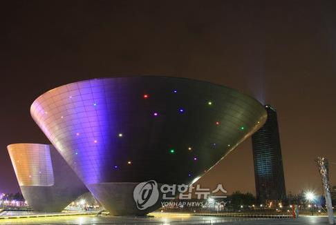 공원과 인접한 문화공연시설인 트라이볼은 해가 지면 100여 개의 LED 조명과 물에 비친 불빛이 함께 어우러져 환상적인 분위기를 연출해 눈을 즐겁게 한다.