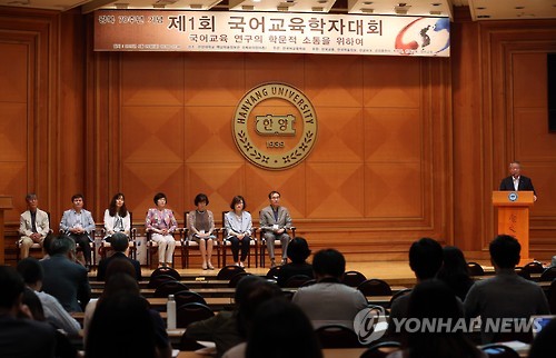 | △ 제1회 국어교육학자 대회 (서울=연합뉴스) 신준희 기자 = 26일 오전 서울 성동구 한양대학교 백남학술정보관 국제회의장에서 제1회 국어교육학자 대회가 열리고 있다. 2015.6.26 hama@yna.co.kr |