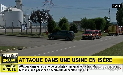 프랑스 경찰에 따르면 범인 2명이 이날 오전 10시께 동부 이제르도 생 캉탱 팔라비에에 있는 가스 공장 정문을 차로 충돌했다.