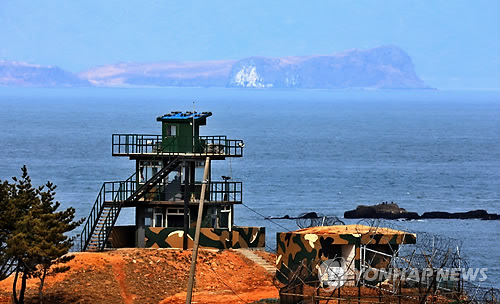 | △ 바다 건너로 북한 월내도와 장산반도가 보이는 백령도의 한 초소. (연합뉴스 자료사진) |
