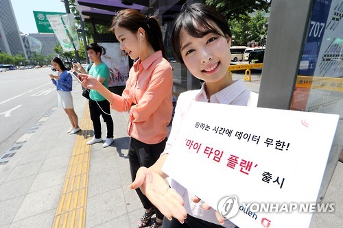 27일 업계에 따르면 KT[030200]는 이달 초 '마이 타임 플랜'라는 부가서비스를 출시했다. 한 달에 7천원을 추가로 내면 하루 3시간씩 데이터를 사실상 무제한 사용할 수 있는 부가서비스다.