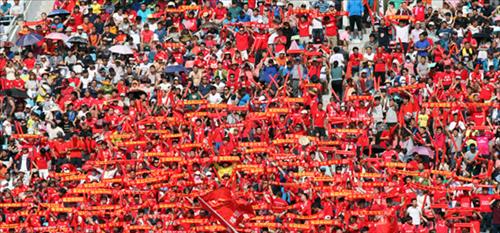 | △ (선양=연합뉴스) 홍창진 특파원 = 조선족 출신 선수를 중심으로 구성된 중국 프로축구 연변FC가 2부 리그 전반기 1위를 확정했다. 27일 홈구장 옌지 인민경기장에서 열띤 응원을 펼치는 홈팬들 모습. <출처 길림신문> realism@yna.co.kr |
