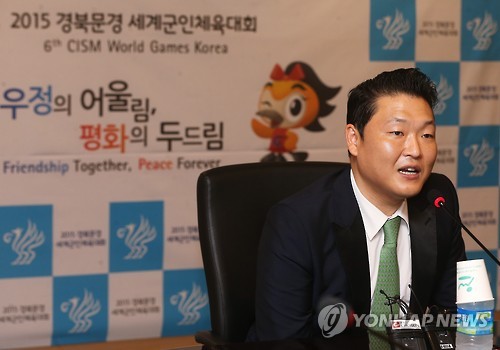 (서울=연합뉴스) 김귀근 기자 = 가수 싸이(37·박재상)가 '2015 경북문경 세계군인체육대회'의 홍보대사로 활약한다고 국방부가 30일 밝혔다.