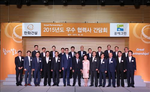 (서울=연합뉴스) 박인영 기자 = 한화건설은 30일 여의도 사옥에서 우수협력사 대표들을 초청해 격려하는 '2015년도 우수협력사 포상 및 간담회'를 진행했다고 30일 밝혔다.