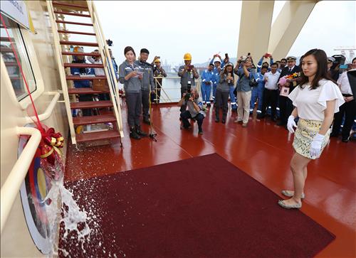 명명을 겸한 인도식에는 회사 임직원과 선주 등 관계자 50명이 참석했다. 새로운 배의 탄생을 알리고 선박의 안녕을 기원하며 샴페인 병을 배에다 던져 깨는 의식인 '샴페인 브레이킹'은 선박시운전 그룹의 박지혜 대리가 대모(代母)로 나서 시행했다.