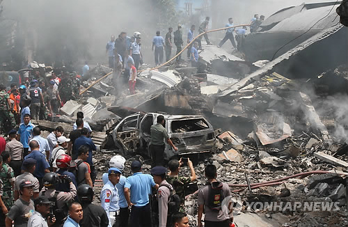 (서울=연합뉴스) 이윤영 기자 = 인도네시아 북수마트라주(州) 메단에서 30일(현지시간) 군 수송기가 주거지역에 추락해 수십명의 사상자가 발생했다고 로이터, AFP통신 등이 보도했다.