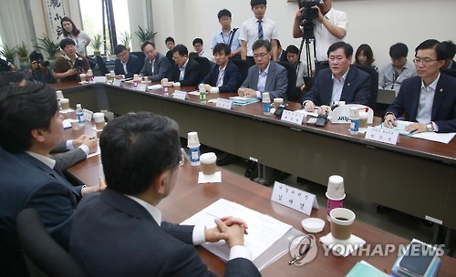 | △ 2015년 추경 관련 당정협의 (서울=연합뉴스) 이상학 기자 = 최경환 경제부총리 겸 기획재정부 장관(오른쪽 두번째)이 1일 국회에서 열린 2015년 추경 관련 당정협의에서 모두 발언을 하고 있다. |
