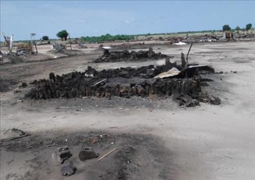 | △ 남수단에서 불타버린 주민 오두막집 투쿨스. 출처: 유엔남수단임무단 보고서 |