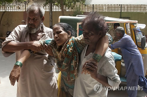 | △ 파키스탄 카라치에서 한 여성 열사병 환자를 가족들이 병원으로 옮기고 있다. (AP=연합뉴스 자료사진) |